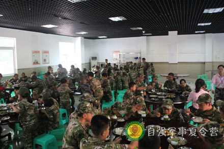 开饭的时候还必须全体安静、听教官的口令行事,因为这是在部队,可不是在家里想怎样就怎样