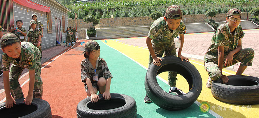 翻越轮胎,两个大轮胎重叠,小战士们用自己的力量翻越过去 ,年级小一点的孩子会有大一点的孩子帮助