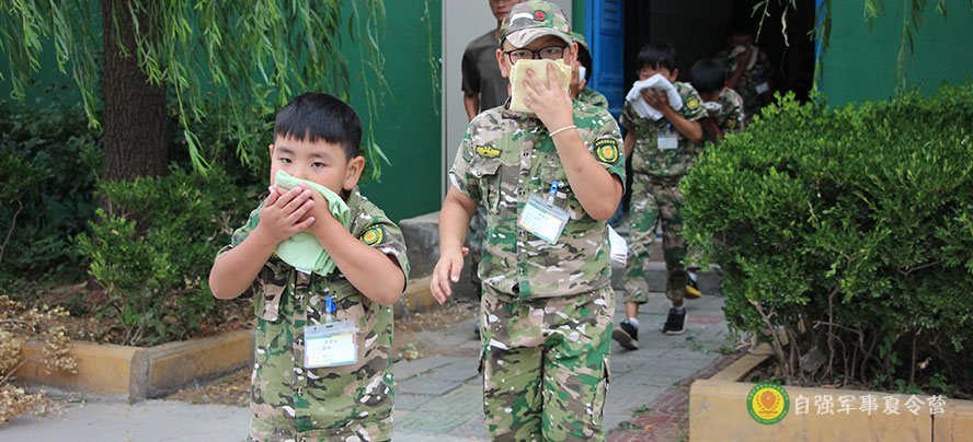 孩子们准备好湿毛巾,由教官讲解一些应对火灾的必备知识。