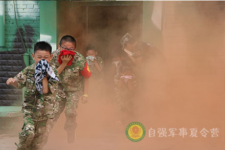 当警报拉响时,教官老师们立即到自己岗位,组织学员们用湿毛巾捂住口鼻,弯腰按预设的次序和通道,有序、迅速、安全撤离事发现场。